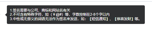 按规则输入签名内容,需与企业名称、商标、官网备案名等关联,字数 2-8 字,无特殊符号;