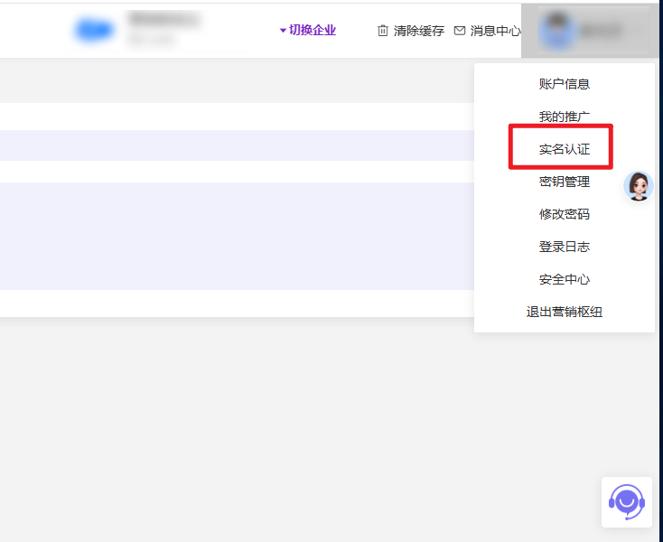 登录营销枢纽管理后台,进入实名认证入口: