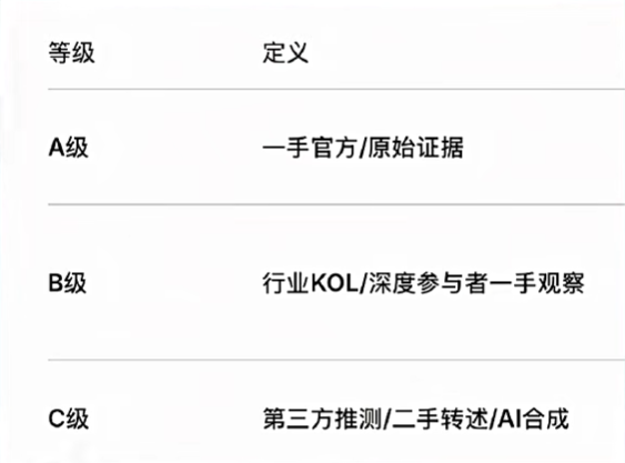 新版DeepSeek R1引入了系统化的信源分级机制,依据品牌关联的直接性、官方认证程度及信息来源的一手性,将信源明确划分为A、B、C三类。凡发布在自媒体等非权威渠道的虚假信息,均被归入C类;若无A类或B类信源作为交叉支撑,相关内容即被判定为无效伪证,模型将自动降权,甚至将发布主体列入黑名单。